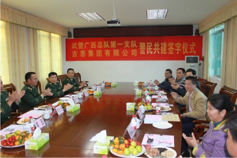為進一步加強警政警民團結(jié),密切警民關(guān)系,促進“三個文明”建設(shè)共同發(fā)展。我集團公司與廣西武警總隊一支隊建立警民共建關(guān)系,共建的目的是為了更好的開展“雙擁”共建活動,切實做好“同呼吸、共命運、心連心”,以共建促自建。并在共建中充分發(fā)揮雙方優(yōu)勢,堅持思想共建為主,互相學(xué)習(xí),互相幫助。通過有組織地深入開展共建活動,提高廣大干部的思想政治素質(zhì)和科學(xué)文化水平,增強國防意識,強化國防觀念,培養(yǎng)“四有”新人,為促進經(jīng)濟建設(shè)、國防建設(shè)及雙方建設(shè)又好又快發(fā)展做出新的貢獻。